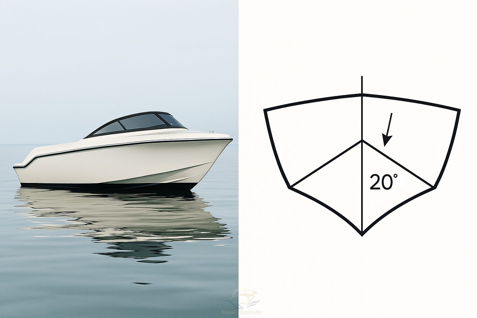 • Tief-V: Bezieht sich auf die V-förmige Querschnittsform des Rumpfes, wobei das „Tief“ darauf hinweist, dass der Winkel besonders steil ist. Das ergibt eine tief eingeschnittene V-Form.